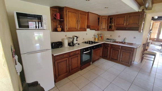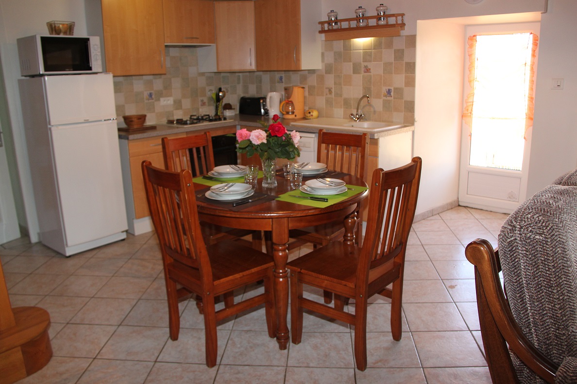 Il dispose de deux chambres à l’étage : une avec lit en 140×190 et la seconde avec une lit 140×190 et deux lits en 90×190. Au rez de chaussé un séjour chaleureux comprend un salon confortable avec télévision et cheminée insert, ainsi qu’une cuisine indépendante ouverte entièrement équipée ouverte sur une grande salle à manger, grande table pouvant accueillir plus de dix personnes et souvent privilégier pour ceux qui loue les deux gites pour se réunir en un lieu unique. Un espace buanderie avec un lave linge est situé à l’étage près de la salle de bain.