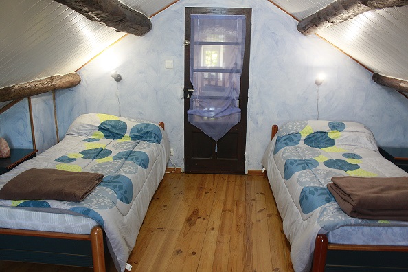 Au rez-de-chaussée, une chambre est équipée d’un lit en 140×190, tandis qu’à l’étage, une chambre supplémentaires en mezzanine accueille deux lits en 90×190 et une autre composée de deux lits 90×190.