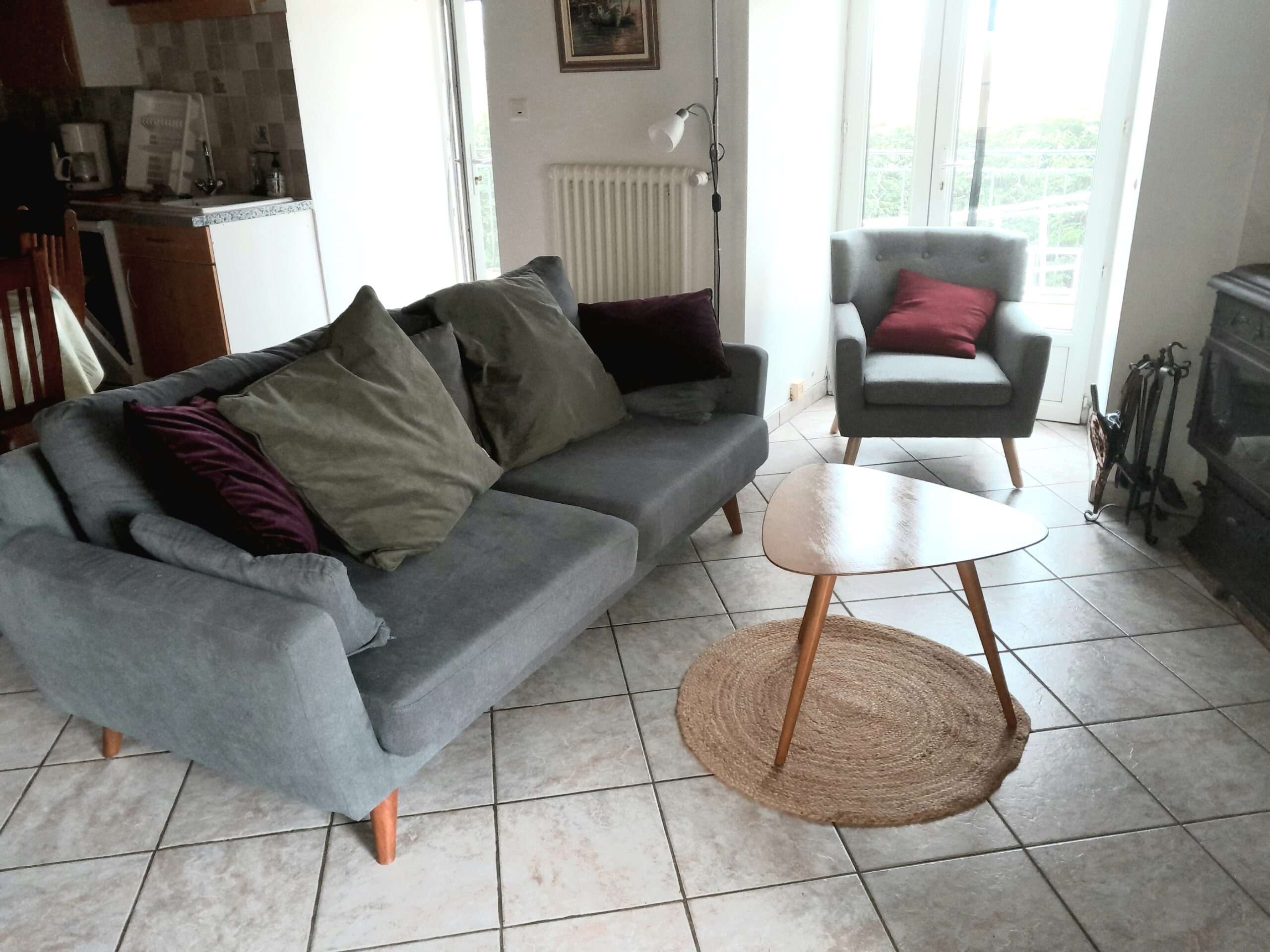 Au rez-de-chaussée, vous découvrirez un vaste séjour lumineux, composé d’un salon élégant et confortable avec canapé, fauteuil, télévision et insert, ainsi qu’une cuisine entièrement équipée ouverte sur l’espace de vie, idéale pour partager des moments conviviaux dans une ambiance chaleureuse.