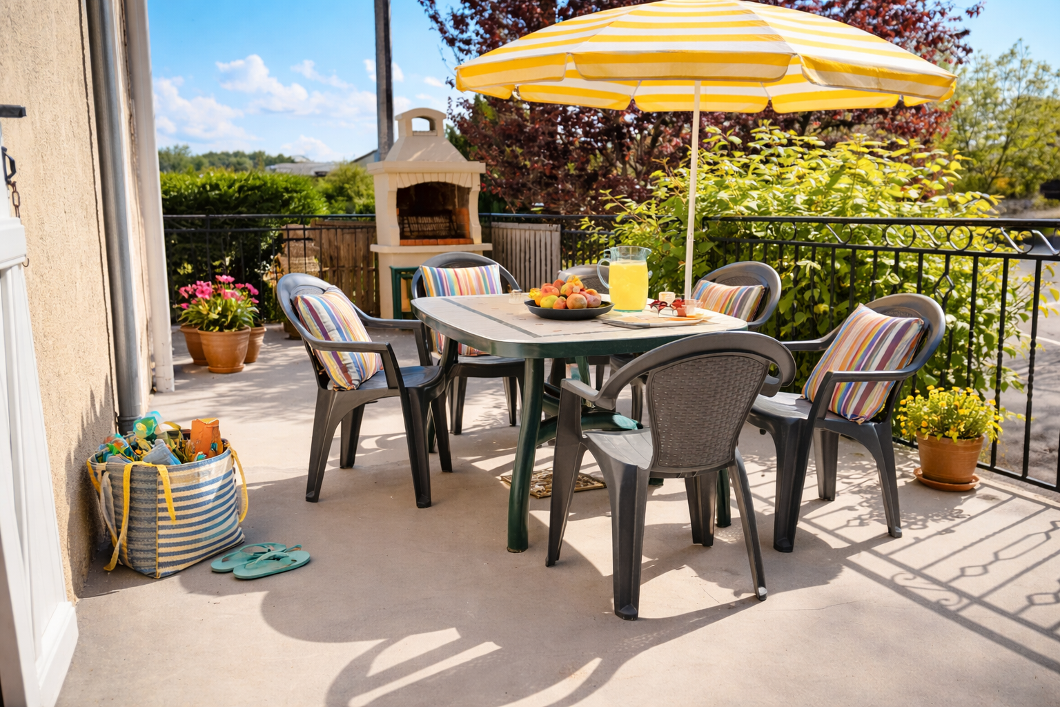À l’extérieur, une terrasse donnant sur un jardin vous permettra de profitez d’un espace agréable avec salon de jardin, barbecue et coin détente, parfait pour savourer le calme et le cadre naturel . Bonne réception 4G.